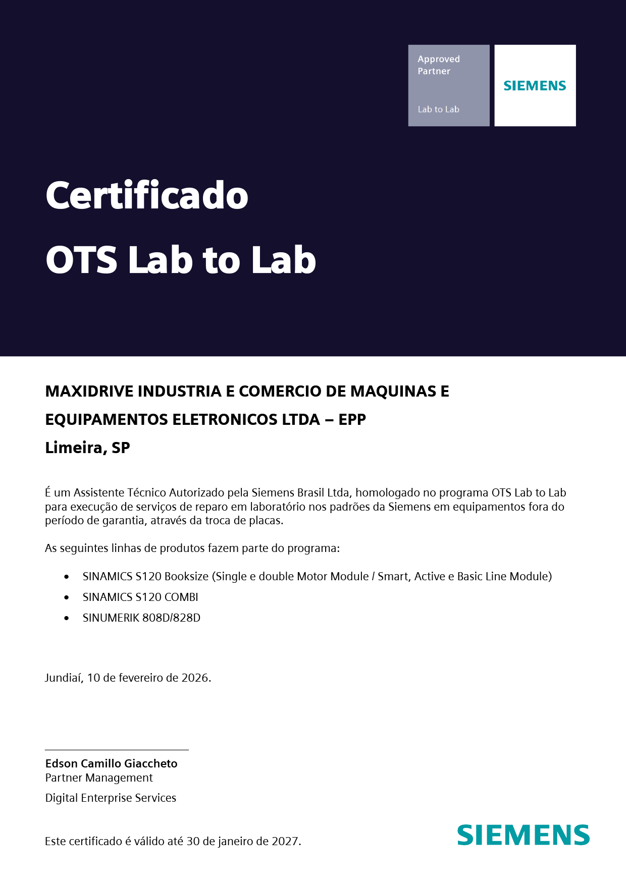 Certificado OTS Lab to Lab Siemens